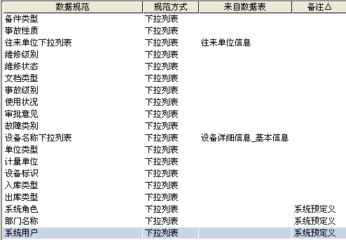 (2)本系统定义的数据规范如下: