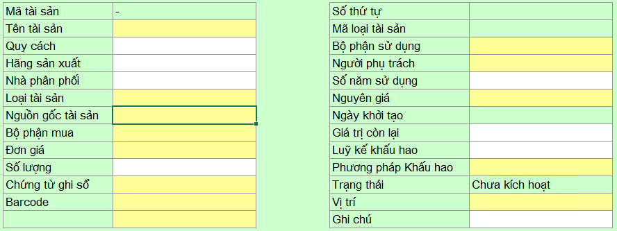 - Trạng thái tài sản: Bảng này cho biết tình trạng của tài sản cố định và liệu tài sản đó có thể được sử dụng hay không.