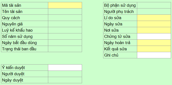 4. Biên bản sửa chữa: Mẫu này là bắt buộc khi tài sản cố định cần gửi ra ngoài công ty để sửa chữa hoặc bảo trì.