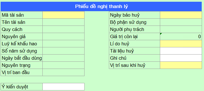 7. Hủy bỏ: Mẫu này dùng khi tài sản cố định được hủy bỏ .